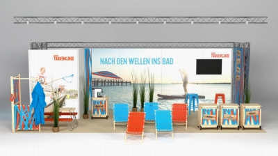 Der im Design der Marke Travemünde gestaltete Travemünde-Stand (Halle 13 Stand 13D68) mit PopUp-Mobiliar und überdimensionalem SUP-Bildmotiv lockt mit einem gelassenen Lifestyle am Meer. Er wirbt auf rund 42 Quadratmetern Ausstellungsfläche direkt an der Destination Seaside Bühne der „boot“ für entspannte Urlaubstage und Wassersportaktivitäten im Ostseebad Travemünde. Neben zahlreichen Informationen zum Urlaubsort sind Print- und Digitalinformationen der Böbs-Werft und watersports Lübecker Bucht am Stand erhältlich.