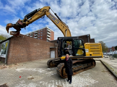 Bürgermeister Jan Lindenau und Bausenatorin Joanna Hagen geben den Startschuss für die Abrissarbeiten und stellen die geplante Umgestaltung der „neuen Mitte“ Moisling vor.