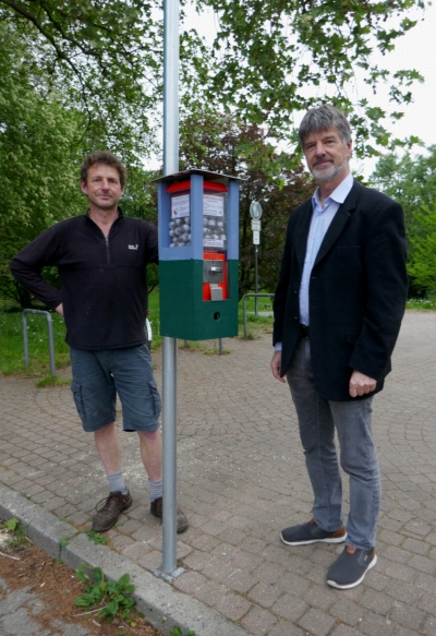 „Für einen Euro kann sich jetzt jeder einen Samenmix aus zertifizierten regionalen Wildblumen aus dem Automaten ziehen, eine Anleitung zum Ausbringen der Mischung liegt bei“, erläutert Oliver Kowalski, der zusammen mit seinem umweltaktiven Cousin Jens Thiel diese Upcycling-Idee nach Lübeck gebracht hat. Dem beharrlichen Einsatz der beiden Initiatoren ist es zu verdanken, dass in Lübeck bereits zwei Automaten aufgebaut sind: Am Haupteingang des Verwaltungszentrums Mühlentor und am Vereinsheim des KGV Mühlentor e.V. in der Dorfstraße. In Kürze werden drei weitere Standorte folgen: Am Museum für Natur und Umwelt, im Eingangsbereich des Kleingartenvereins Lachswehr e.V. und beim Rewe Markt Krummeck.