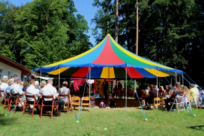 Eingeweiht wurde mit dieser Aufführung auch das neue Zirkuszelt der Kita. Ermöglicht wurde die Anschaffung durch den Förderverein der Kindertageseinrichtung und insbesondere durch die Gemeinnützige Sparkassenstiftung.