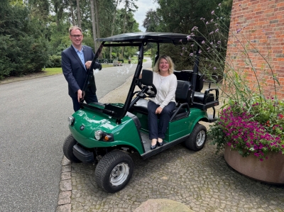 Bürgermeister Jan Lindenau und Joanna Hagen, Senatorin für Planen und Bauen der Hansestadt Lübeck, haben offiziell vier neue Elektro-Carts an die städtische Friedhofsverwaltung übergeben.