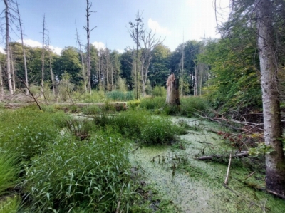 Moore sind nicht nur wichtige Kohlenstoffspeicher und damit klimapolitisch von außerordentlichem Wert, sondern bilden auch einen sehr wichtigen Lebensraum für viele selten gewordene Pflanzen- und Tierarten. Auch für den Wald selbst bedeuten Moore weit mehr als wirtschaftlich ungenutzte Flächen: Sie erfüllen eine wichtige Wasserspeicherfunktion. Bei intensiven Trockenheitsperioden können Moore Feuchtigkeit an die Umgebung abgeben, sodass umliegende Standorte profitieren und deutlich widerstandsfähiger sind.