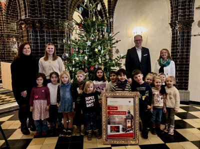 Nachdem der Baum geschmückt war, trafen sich Kitaleitung und die Kita-Kinder mit Bürgermeister Jan Lindenau zum gemeinsamen Adventssingen bei Gebäck und Kinderpunsch. Zum Abschluss gab es für die fleißigen Bastlerinnen und Bastler eine kleine, süße Weihnachtstüte vom Bürgermeister – natürlich mit Fairtrade-Schokolade. Lübeck ist in diesem Jahr auch zur Fairtrade-Hauptstadt Deutschlands gekürt worden.