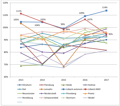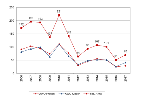 Zahl Frauen und Kinder in Frauenhäuser Lübeck 2006-2017