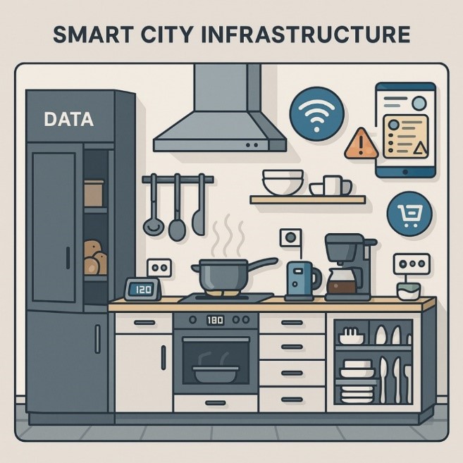 Alle Nahrungsmittel können in der Küche untergebracht und verarbeitet werden. Für Kartoffeln gibt es den dunklen kühlen Vorratsschrank, für leicht verderbliche Lebensmittel den Kühlschrank usw. In Analgoie zu der digitalen Infrastruktur bedeutet das: