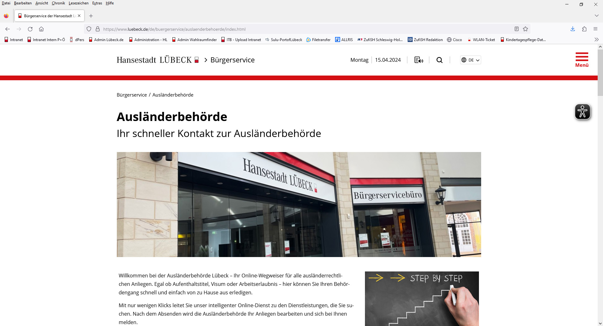 Kehren Sie zurück auf die Internetseite der Ausländerbehörde der Hansestadt Lübeck und folgen Sie weiterhin der Schritt für Schritt Anleitung.