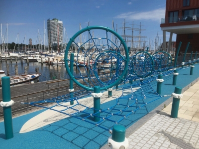 Das Spielgerät, das im Sinne des Fördergeldgebers als Alleinstellungsmerkmal für die Priwallpromenade geplant wurde, ist eine Sonderanfertigung. Er besteht im Wesentlichen aus einem Klettergerät, das einer Fischreuse nachempfunden ist, und soll gestalterisch eine Verbindung von den Anlegestegen des Sportboothafens zur Ostseestation herstellen. Bei solchen dreidimensionalen Konstruktionen, die auch den Spielraum der DIN Normen weidlich ausnutzen, ist eine Nachbesserung und damit eine verlängerte Bauzeit nicht selten erforderlich. Im Bauvertrag wurde die Abnahme durch einen unabhängigen Sachverständigen vereinbart. Das hierzu erstellte Gutachten forderte Änderungen am Seilnetz und an der Einfriedung. Mit dem Planungsbüro und den beteiligten Firmen wurden daraufhin Art und Umfang der erforderlichen Nachbesserungen vereinbart. Diese konnten, aufgrund der Corona-Pandemie bedingten Lieferverzögerungen, erst jetzt fertig gestellt werden. +++