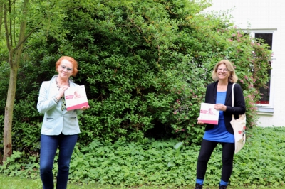 Senatorin Monika Frank und Christiane Prüßmann vom Verbund Willkommensbesuche präsentieren den neuen Ordner