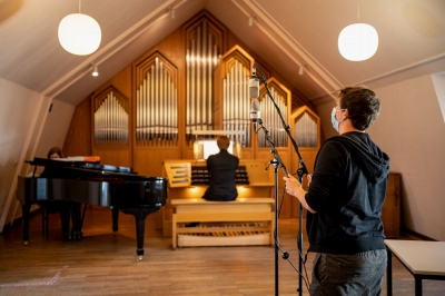 Nicht länger warten wollte eine engagierte Gruppe von Studierenden der Lübecker Musikhochschule (MHL), die sich seit dem letzten Jahr auf die Umsetzung ihres Realprojektes im Rahmen des HKF freuen. Bereits in den Vorjahren haben sich dynamische Projektgruppen der MHL an der Umsetzung des HanseKulturFestivals beteiligt, jedoch war die Motivation diesmal besonders groß, schließlich ist die Talentschmiede selbst im Festivalgebiet gelegen und somit unmittelbare Gastgeberin des Festes. Und so hat die Gruppe um die Studentinnen Johanna Ludwig und Ella Rosenberg kurzum das geplante Wandelkonzert durch den verschachtelten Gebäudekomplex in der Großen Petersgrube in ein knapp einstündiges Video verwandelt, das ab sofort auf der Website des HKF hansekulturfestival.de zu sehen ist und Freude auf all das macht, was uns nächstes Jahr erwartet.