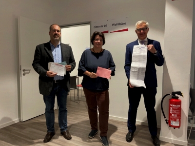 Komm. stellv. Bereichsleitung Ordnungsamt Herr Thorben Schultz, Bereichsleitung Wahlen Frau Beate Lege und Senator Herr Ludger Hinsen (v.l.n.r.)