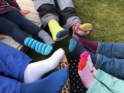 Fotos von unterschiedlichen und bunten Socken können gerne in den sozialen Netzwerken geteilt werden – mit den Hashtags #BunteSockenTag, #InklusionMeans #Sockenaufforderung und #Weltdownsyndromtag.