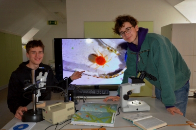 An Jugendliche ab 12 Jahren richtet sich der Workshop mit dem Titel „Smartphone trifft Mikrowelt“, der in den Osterferien an gleich zwei Terminen, am 5. sowie am 8. April 2022 jeweils von 14 bis 16.30 Uhr angeboten wird. Unter der Leitung von Max Werning und Lukas Blome, die beide ein Freiwilliges Ökologisches Jahr am Museum für Natur und Umwelt absolvieren, geht es nach einem Besuch der Ausstellung gemeinsam an den Mühlenteich, um Proben zu keschern. Im Anschluss können die Teilnehmer:innen unter dem Mikroskop entdecken, was für eine - für das bloße Auge unsichtbare - Vielfalt an Mikroorganismen sie im Plankton eingefangen haben und diese mit ihrem Smartphone dokumentieren. Das Angebot, das von den beiden FÖJlern selbst konzipiert wurde, verbindet Mikroskopie, Fotografie und Film. Wenn möglich, sollte für den Workshop ein eigenes Smartphone mitgebracht werden. Zudem empfiehlt es sich, wetterfeste Kleidung zu tragen sowie gegebenenfalls ein Getränk und einen kleinen Snack dabei zu haben.