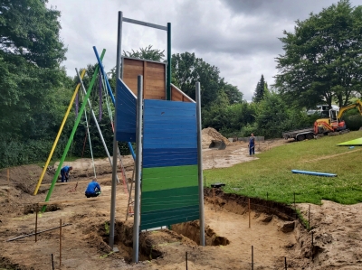 Zurzeit werden die Spielgeräte aufgestellt und montiert, parallel stellt eine Garten- und Landschaftsbaufirma die neuen Spielflächen her. Zur Beschattung der großen Fläche werden, zusätzlich zum vorhandenen Gehölzbestand, fünf Bäume sowie mehrere Sträucher mit hohem Insektennährwert gepflanzt. Sobald der neue Spielplatz fertiggestellt ist, wird es einen offiziellen Eröffnungstermin geben. +++