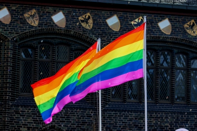Regenbogenflaggen vor dem Lübecker Rathaus