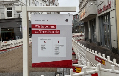 Die Beckergrube bietet Lübecker:innen und Gästen der Hansestadt seit jeher ein vielfältiges Angebot aus Einzelhandel, Kultur und Gastronomie – auch während der laufenden Bauarbeiten bleiben alle Hauseingänge für Fußgänger:innen erreichbar. Neue Hinweisschilder sorgen nun für zusätzliche Orientierung: Um die Sichtbarkeit der ansässigen Betriebe trotz Baustelle zu erhöhen und Passant:innen zu zeigen, wie sie ihre Ziele am besten erreichen, hat die Stadt entsprechende Wegweiser installiert.