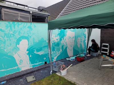 Am kommenden Samstag, 28. Juni 2025, haben Interessierte nun die Möglichkeit, selbst an diesem Kunstwerk mitzuwirken: Von 14 bis 17 Uhr findet ein Street Art Workshop statt, bei dem unter Anleitung von Greta von Richthofen gemeinsam eine Teilfläche des Wandbilds unter der Fragestellung „Was bedeutet Fortschritt und wie wird die Zukunft aussehen?“ gestaltet wird. Das Ergebnis bleibt dauerhaft in das Wandbild integriert.