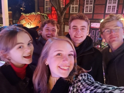 Die Gründungsmitglieder der Norddeutschen Jugendhanse. v.l.n.r. hinten: Leo Staritzbichler, Johannes Schott, Marcel Albrecht sowie vorne: Clara Torborg und Paula Eick