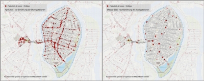 Der positive Eindruck lässt sich auch mit Fakten stützen. Die Unternehmen haben Daten aller Abstellvorgänge aus 2025 zur Verfügung gestellt. Diese zeigen eindrucksvoll, wie sich das Abstellverhalten nach Einführung der Sharingstationen verändert hat. 97 Prozent der Abstellvorgänge lassen sich den Sharingstationen zuordnen. Daher wird nun die Einführung weiterer Stationen geprüft. +++