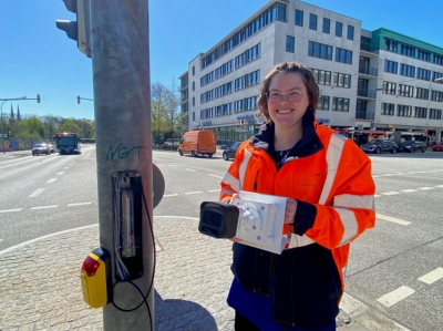 Seit Montag, 20. April 2026, werden hierzu in Lübeck insgesamt vier Kreuzungen mit einem innovativen System zur Verkehrserfassung ausgestattet. Diese erfasst datenschutzkonform die Anzahl und Art der Verkehrsteilnehmer. Dadurch kann in Echtzeit auf Verkehrsereignisse reagiert und durch eine umfassende Analyse der Kreuzungssituation der Verkehr besser geplant werden.