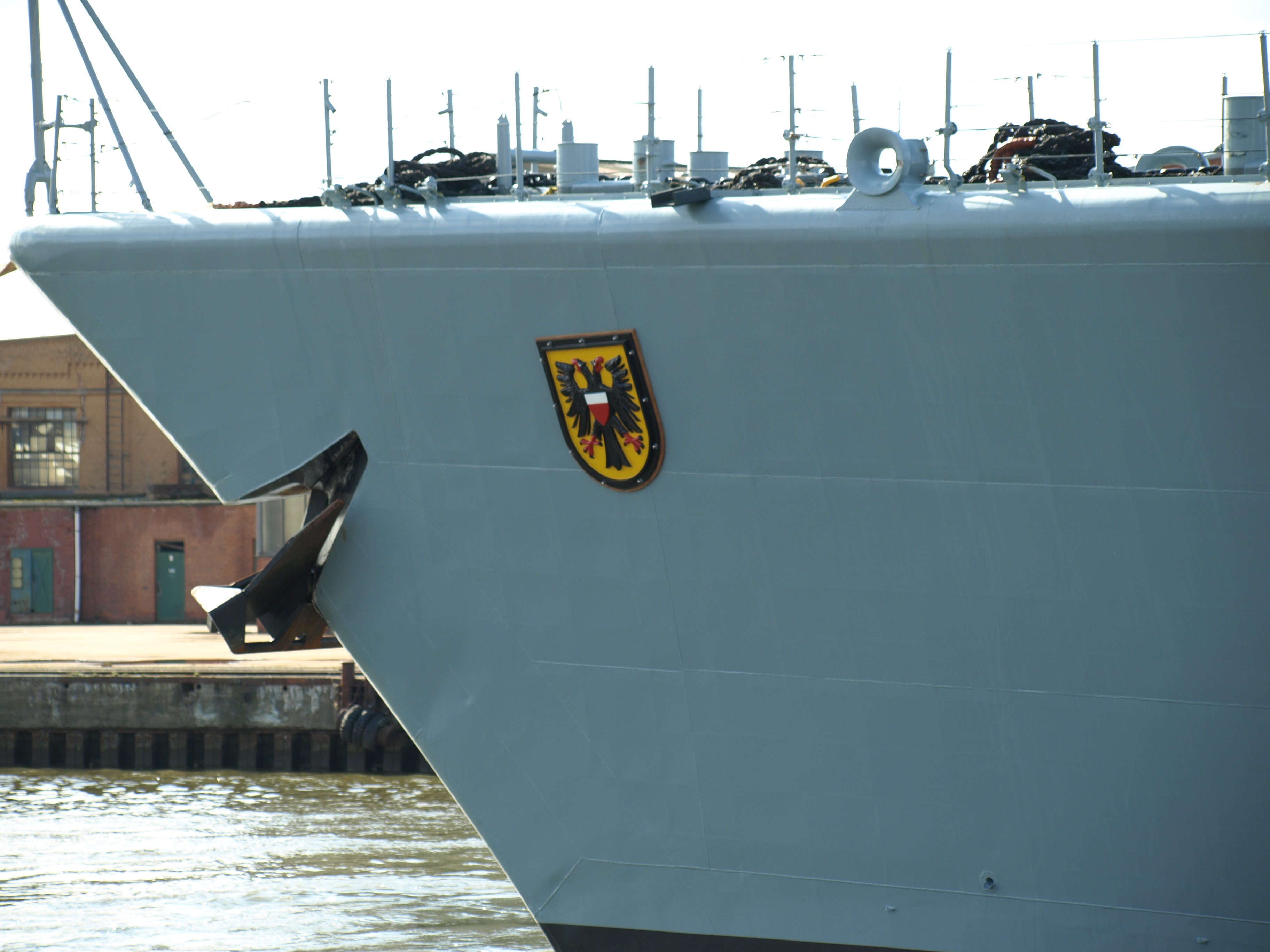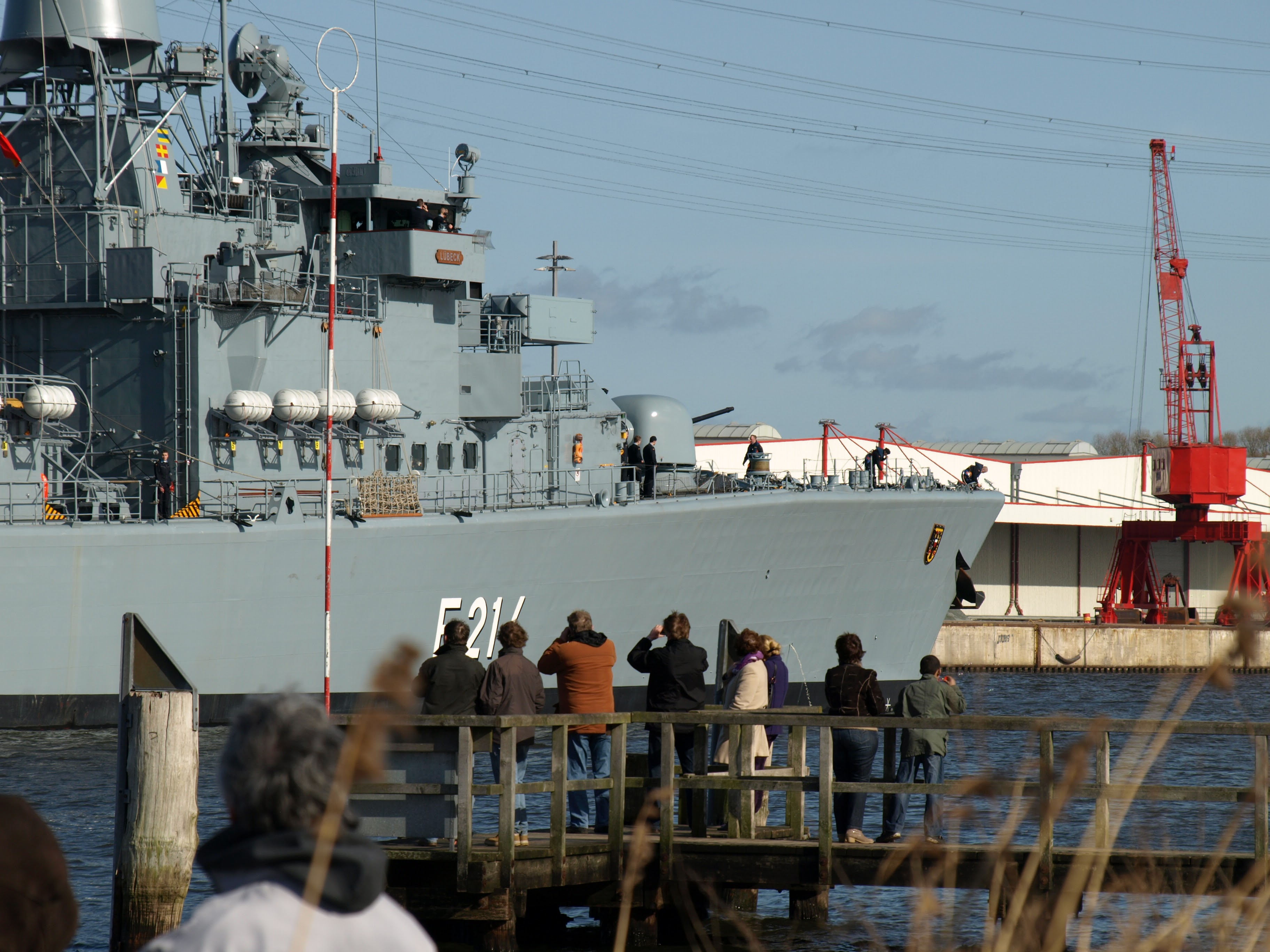 Wegen des stürmischen Wetters musste damals der Stapellauf kurzfristig verschoben werden. Und auch bis zur endgültigen Indienststellung musste sich die Patenstadt noch gedulden, bis sie „ihre“ Fregatte im März 1990 im aktiven Dienst begrüßen durfte.