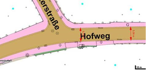 Bei den angesprochenen Flächen handelt es sich lt. Stadtgrundkarte um wassergebundene Gehwege. Als Beispiel ist hier die Kreuzung Hofweg/Schlözerstraße als Auszug beigefügt: