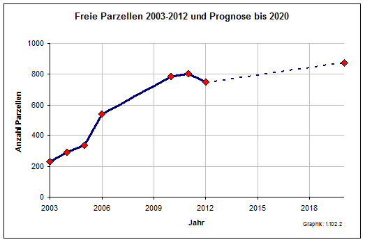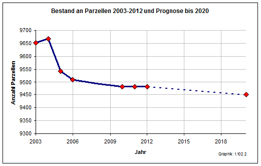 Von den 9482 Parzellen standen im Oktober 2012 747 Parzellen leer. Ausgehend von einer Parzellengröße von ca. 400 m² ergibt sich somit ein Leerstand von ca. 298.800 m². = ca. 30 ha. Die durchschnittliche Leerstandsquote beträgt für alle Anlagen 7,88 %, siehe nachfolgende Auflistung des Kreisverbandes der Kleingärtner.