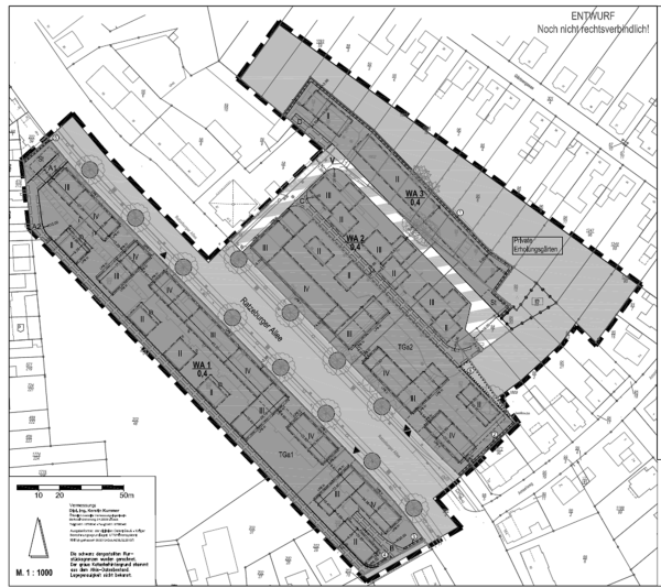 Die Hansestadt Lübeck stellt derzeit den Bebauungsplan (B-Plan) „02.11.00 – Ratzeburger Allee/Gärtnergasse“ auf. Der B-Plan überplant ein Gebiet entlang der Ratzeburger Allee und umfasst im Wesentlichen die Grundstücke mit den Haus-Nrn. 50-74 auf der Westseite und 47b – 51c auf der Ostseite der „Ratzeburger Allee“ (Planausschnitt siehe letzte Seite der Vorlage). Mit diesem B-Plan sollen die Voraussetzungen für eine Neubebauung der genannten Flächen im Plangebiet durch den „Lübecker Bauverein e.G.“ geschaffen werden. Der bisher im Plangebiet vorhandene Gebäudebestand aus den 1950er Jahren entspricht nicht mehr den Anforderungen an zeitgemäßes Wohnen und ist in hohem Maße sanierungsbedürftig. Da die geschätzten Aufwendungen für die Gebäudesanierung über denen einer kompletten Neubebauung liegen, hat der „Lübecker Bauverein“ sich für eine Neubebauung des Areals entschieden. Um der besonderen städtebaulichen Ausgangssituation Rechnung zu tragen, ist ein Wettbewerbsverfahren durchgeführt worden. Der hieraus siegreich hervorgegangene Entwurf soll nunmehr baulich umgesetzt werden.