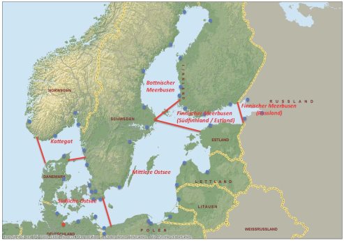 (5) Finnischer Meerbusen (Südfinnland / Estland) | geprägt durch die Liniendienste mit Helsinki, Hanko und Turku und dem Transitverkehr nach Russland |