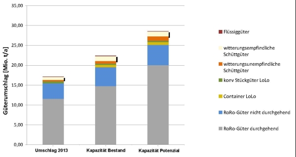 liegen. Für Flüssiggüter, konventionelle Stückgüter und witterungsunempfindliche Schüttgüter stehen keine oder nur geringe Kapazitätsreserven zur Verfügung.