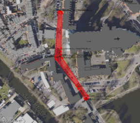 Der erste Abschnitt beginnt an der Brücke Höhe Alte Mühle und endet vor der Einfahrt des Parkplatzes der Bauverwaltung. Der zweite Bauabschnitt beginnt an der Einfahrt zu Bauverwaltung und endet etwa auf Höhe des Eingangs zum Völkerkundemuseum.