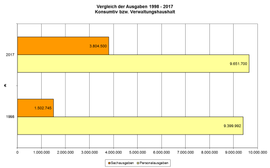 Zur Auswertung der Haushaltsmittel wurden die Haushaltspläne 1998 und 2017 herangezogen. Aufgrund der zwischenzeitlich erfolgten Umstellung des Rechnungswesens von der Kameralistik auf die Doppik sind die Ausgaben nur bedingt vergleichbar.