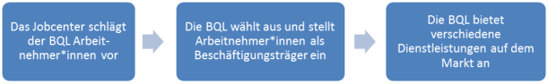 Sinnvoller wäre es, eine schon bestehende Gesellschaft mit der Durchführung zusätzlich zu betrauen. Die BQL (Berufsausbildungs- und Qualifizierungsagentur Lübeck GmbH) wäre dem Grunde nach von der Ausgangslage und Aufgabenstellung her dafür geeignet, auch wenn der Bereich Recht hierzu noch eine eingehendere Prüfung anregt, ob ggf. der Gesellschaftszweck der BQL angepasst bzw. erweitert werden müsste. Zudem könnten die schon vorhandenen fachlichen Kompetenzen in der beruflichen Integration sowie die etablierten Netzwerke und Kooperationen gewinnbringend in eine Beschäftigungsgesellschaft eingebracht werden. Das betreffende Geschäftsfeld ist dabei für die BQL kein Neuland; es wurden in der Vergangenheit u.a. die Projekte „Bürgerarbeit“ (2011-2014) und „BIWAQ“ (2012-2014) erfolgreich durchgeführt.