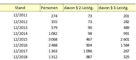 Asylfälle, Stand zum 31.12.2018, Vierteljahresstatistik