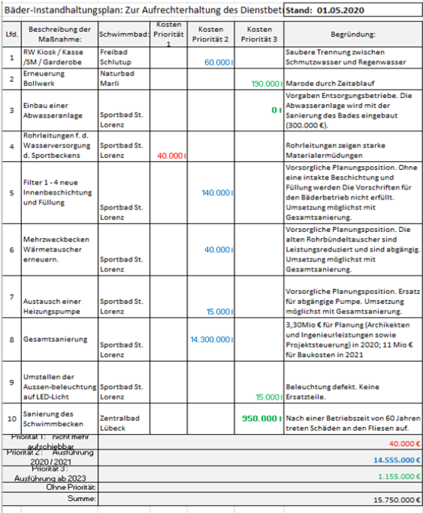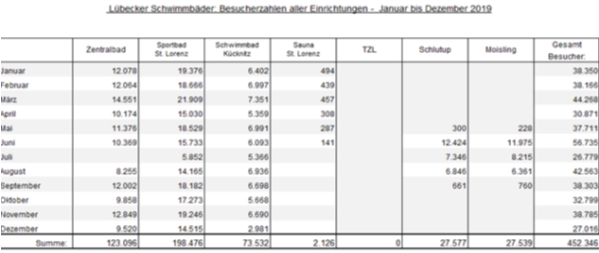 Der Jahresabschluss des Eigenbetriebes Lübecker Schwimmbäder für das Wirtschaftsjahr 2019 wird wie folgt festgestellt: