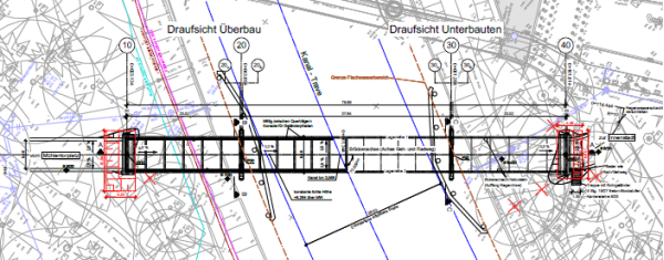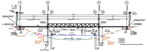 Auf Basis der laufenden Planung (Arbeitsstand 11/2021) wird nachfolgend der Entwurf der Brücke mit Leitwerk beschrieben und mittels Planauszügen dargestellt.