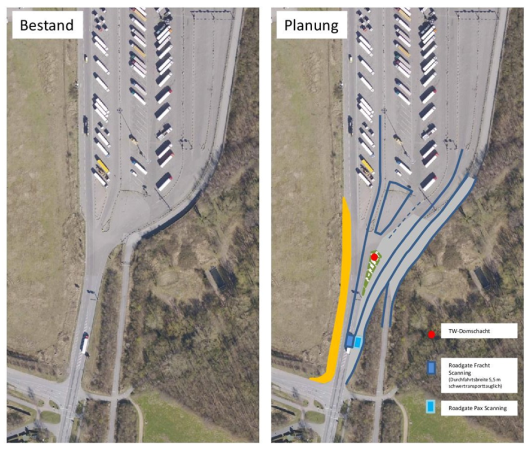 Das Roadgate erfasst dazu durch Scanner bzw. Bildauswertung automatisch die Daten der in den Südgatebereich einfahrenden Einheiten, gleicht diese mit den Buchungs- bzw. Anmeldedaten des Betreibers ab und stellt so die Berechtigung des Aufenthalts im Südgatebereich fest. Bei einer fehlerhaften Einfahrt kann der Sicherheitsdienst unmittelbar auf das Fehlverhalten reagieren und so Störungen des Gateablaufs minimieren.