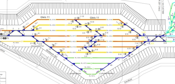 Bild: Schematische Darstellung der Gleisanordnung Bahnhof LSK