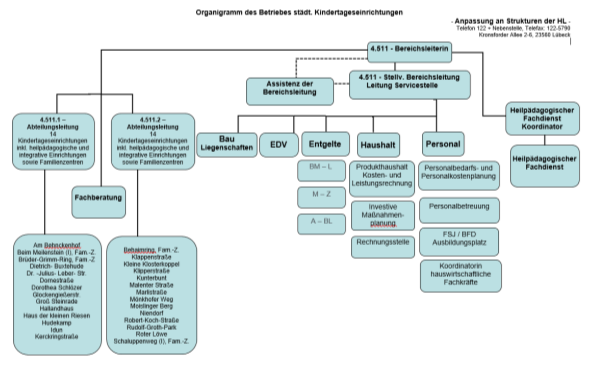 Die Stellen wurden für den Haushalt 2024 angemeldet. Der künftige Aufbau des Bereichs 4.511 Städtische Kindertageseinrichtungen ist dem Organigramm zu entnehmen.