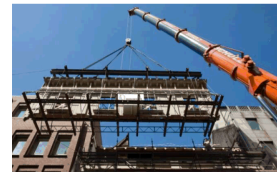 • Herausheben der Fassadenteile mit einem Schwerlastkran