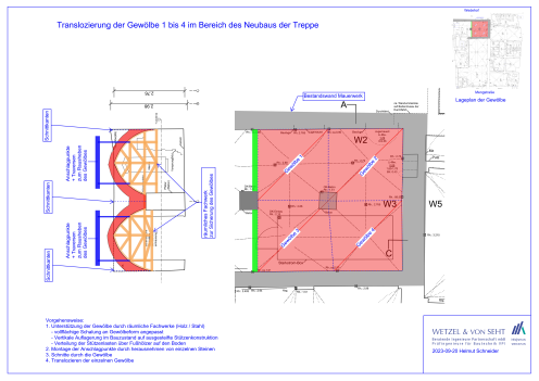 Seitens des Tragwerksplaners wurde auf der Basis der Translozierungskosten der Fassade eine Gegenüberstellung der beiden Translozierungen (Fassade / Gewölbe) erarbeitet.