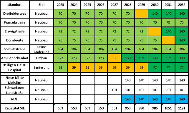 Hierbei stellen sich die SIE der Verantwortung, für die Dauer der Sanierung ausreichend Plätze in anderen Betriebsstätten sicherzustellen. Dies wird in dem den Sanierungszeitraum betreffenden Wirtschaftsplan entsprechend dargestellt werden.