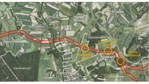 Die von der 50 Hertz GmbH vorgelegte Grobtrasse durchquert das Krummesser Moor auf einer Länge von rd. 1,5 km. Dieser Bereich gehört zwar zum Gebiet des Herzogtums Lauenburg, aber Teile des Krummesser Moors liegen auch auf dem Stadtgebiet der Hansestadt Lübeck.