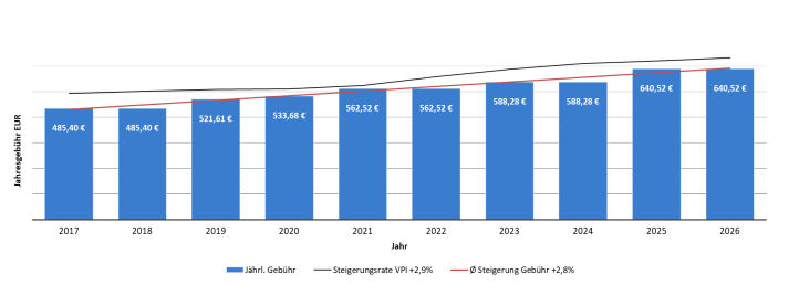 Die langfristige Gebührenentwicklung wird durch folgende Grafik abgebildet: