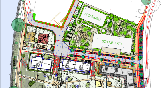 Die ersten Planungsschritte für das Neubauvorhaben Grundschule mit Sporthalle und Kita sind nunmehr erfolgreich umgesetzt. Am 03.06.2025 erfolgte die Vorstellung zum Abschluss der Leistungsphase 2. Die Maßnahme befindet sich aktuell im Terminplan. Die Kostenschätzung für die Gesamtmaßnahme beläuft sich zum heutigen Zeitpunkt auf ca. 34,5 Mio. EUR.