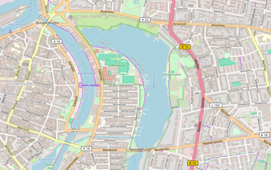 Die Radwege in der Roonstraße (B 75) entsprechen zwischen Walderseestraße und Hövelnstraße auf einer Länge von ca. 340 m nicht den Empfehlungen für Radverkehrsanlagen (ERA 2010) und werden ihrer Funktion als Bestandteil des Landesweiten Radverkehrsnetz (LRVN) nicht gerecht.