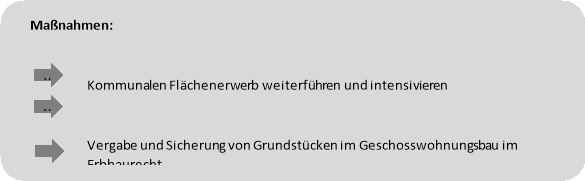 | mittel | Um das Ziel einer sozial gerechten Bodennutzung und Sicherung von bezahlbarem Wohnraum zu erreichen, hat die Stadt Lübeck das Instrument des Erbbaurechts hinsichtlich seiner Wirtschaftlichkeit und Marktfähigkeit bereits mehrfach angepasst (VO/2021/10473-01). Mit der Anpassung des Erbbauzins und der Entschädigung in voller Höhe des Gebäudewerts nach Ablauf des Erbbaurechts soll das Angebot an Erbbaurechtsgrundstücken wieder attraktiver werden. Die wirtschaftlichen Anreize in den Geschosswohnungsbau auf den stadteigenen Bauflächen sowie die Aufhebung des Ankaufrechts bei Mehrfamilienhäusern mit mehr als 6 WE (VO/2021/10473-1) ermöglicht der Stadt langfristig den Mietwohnungsbestand zu sichern und auch in Zukunft günstigen Wohnraum zu schaffen. |