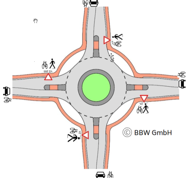 - Radwege mit Bevorrechtigung (umlaufender Radweg)