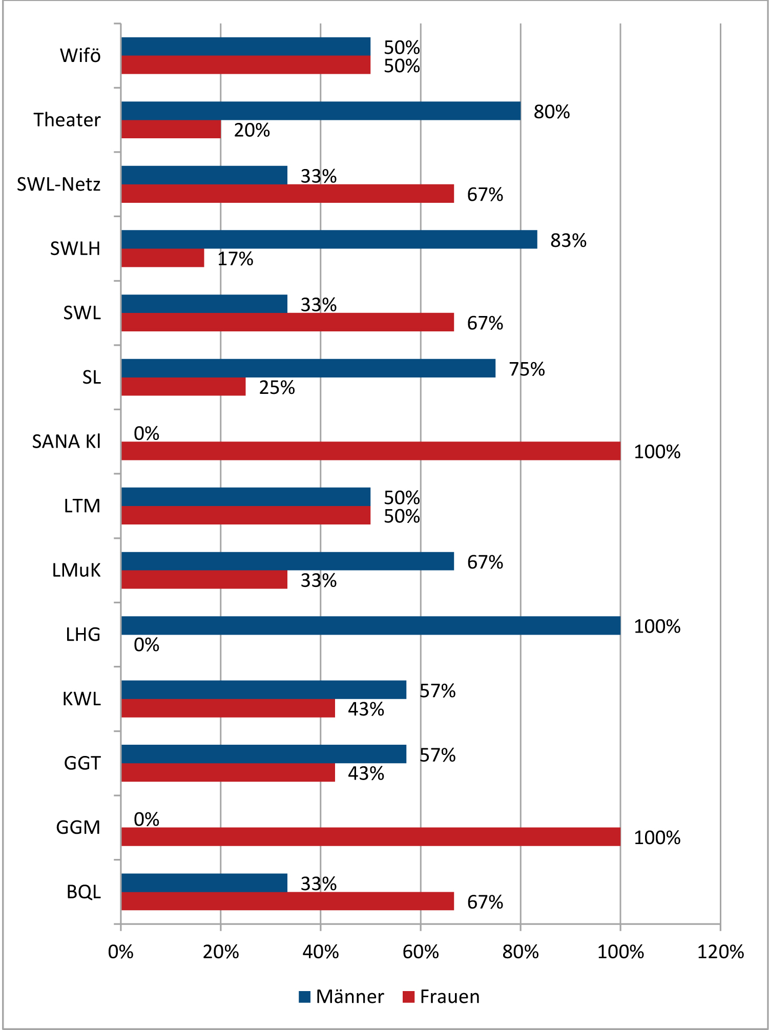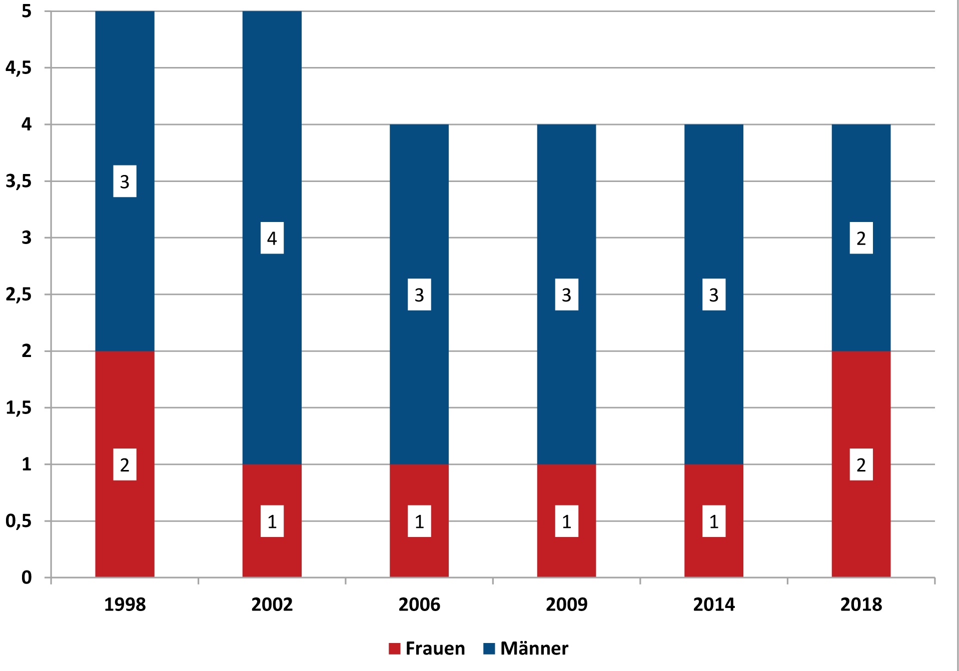 Der Anteil der Frauen an den Senator:innen in Lübeck lag 2018 bei 50%. Zwei der vier Senator:innen waren (und sind) Frauen. Laut „Genderranking deutscher Großstädte“ ist auch bundesweit der Frauenanteil unter den Dezernent:innen gestiegen: von 18,5% 2008 auf 29,1% 2017. www.boell.de