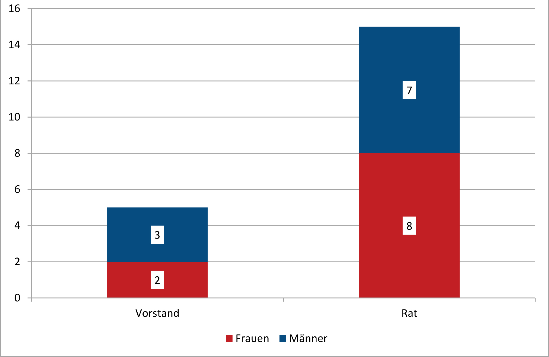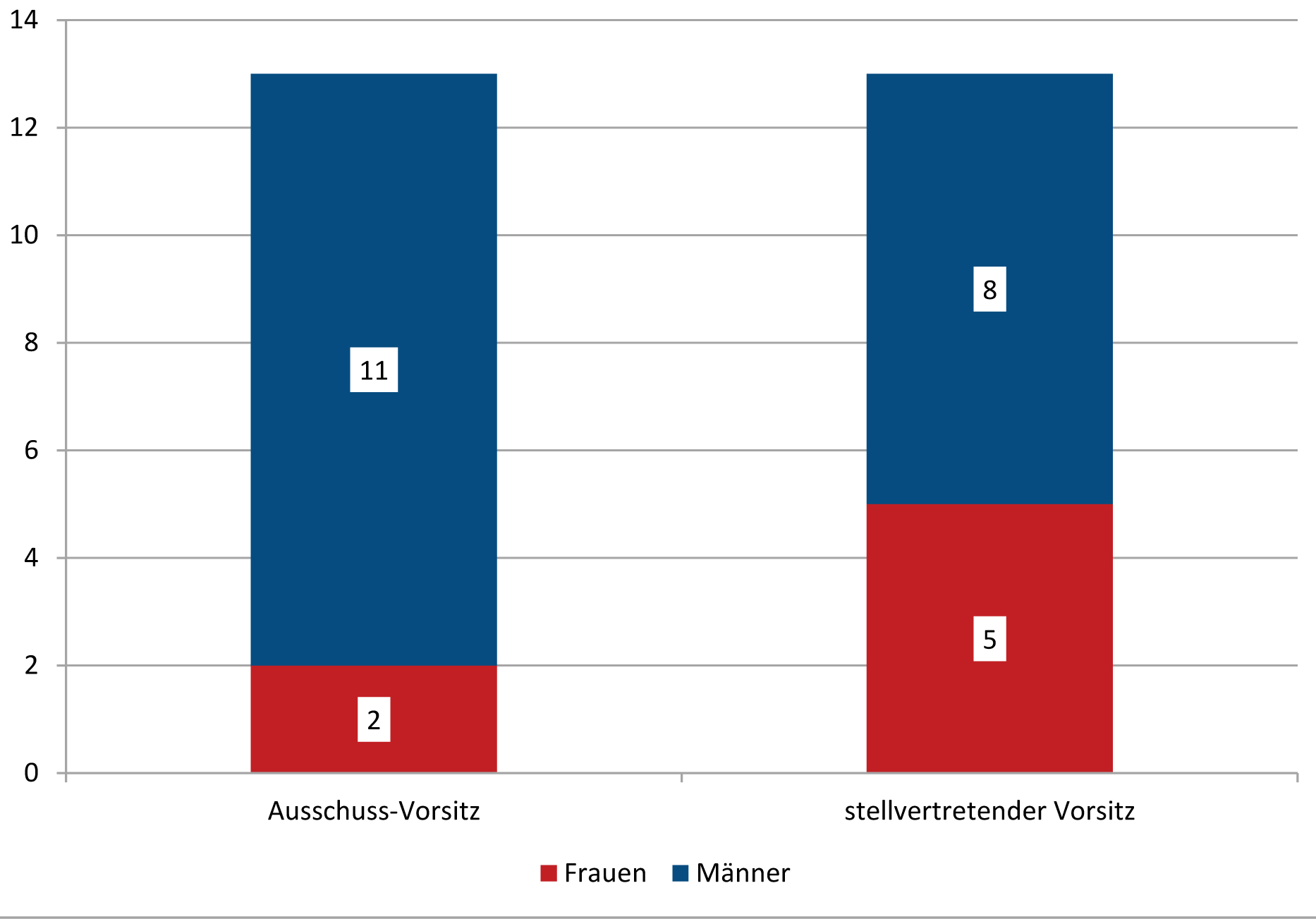 Nur zwei Frauen hatten 2018 den Vorsitz eines Ausschusses inne, aber 11 Männer (85%).
