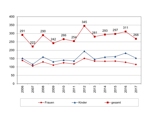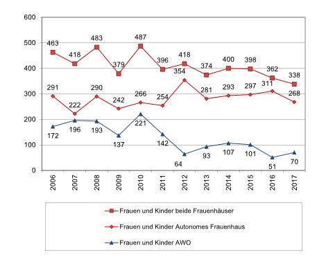 Zahl Frauen und Kinder in Frauenhäuser Lübeck 2006-2017
